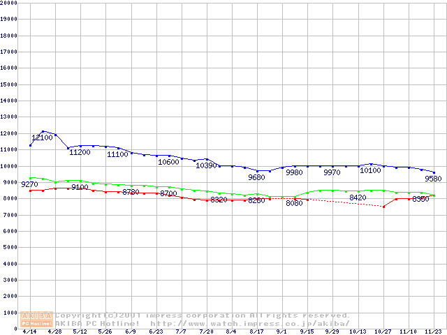 | [↑前グラフ]: | MPG3xxxAH-E (7200rpm UltraATA/100)の最安値推移 |