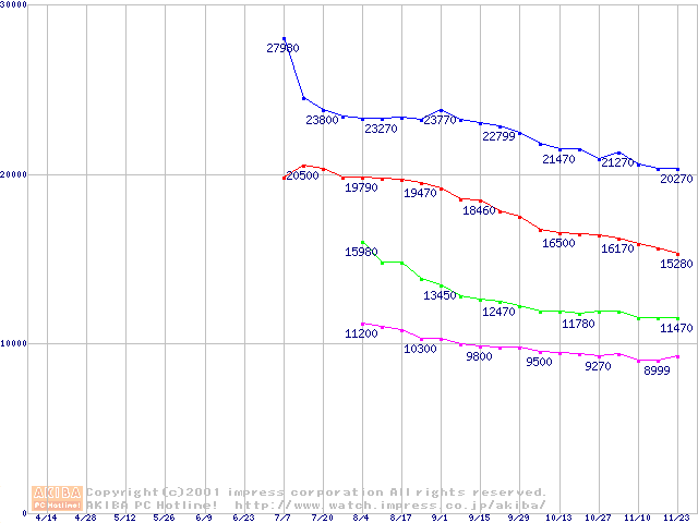 | [↑前グラフ]: | Fireball Plus AS (7200rpm UltraATA/100 2MB)の最安値推移 |