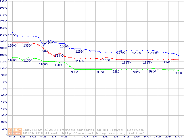 | [↑前グラフ]: | WD Caviar (7200rpm UltraATA/100)の最安値推移 |