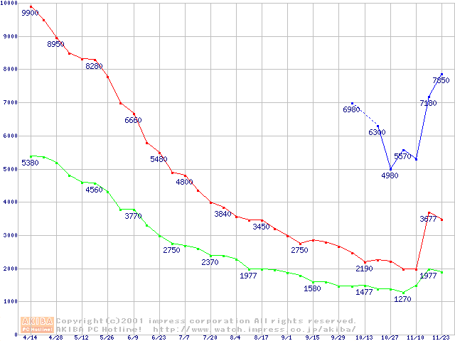 | [↓次グラフ]: | PC100 SDRAM DIMM CasLatency=2の最安値推移 |