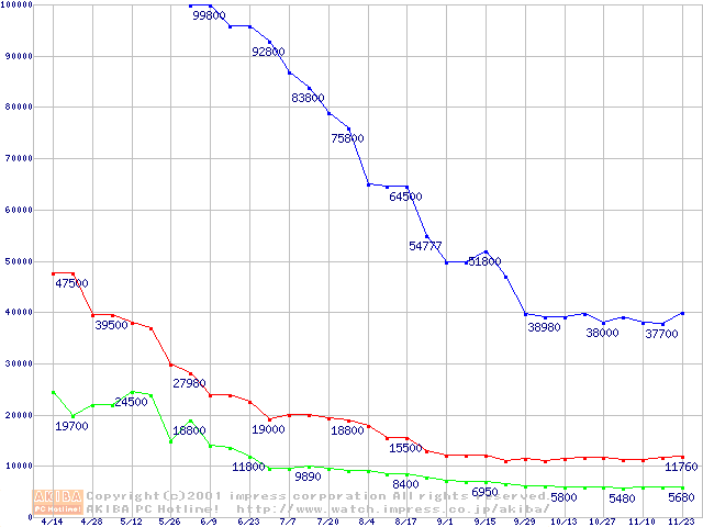 | [↑前グラフ]: | PC800 DRDRAM RIMMの最安値推移 |