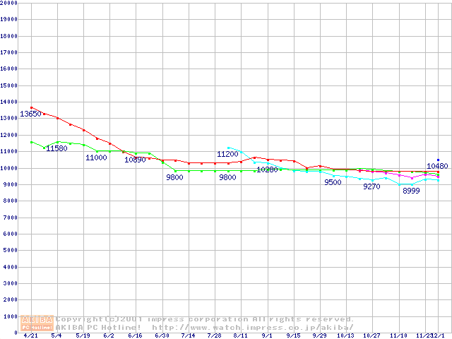 | [↑前グラフ]: | HDD 10GB~20GB未満(7200rpmクラス)の最安値推移 |