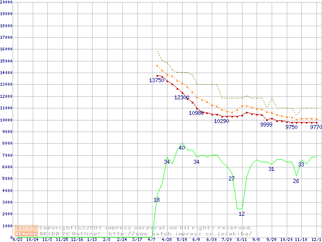 Deskstar 60GXP (7200rpm,UltraATA/100 2MB)の最安値推移