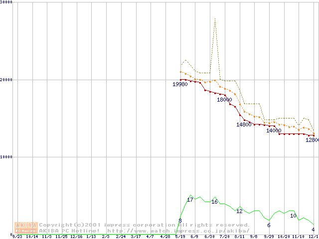 DiamondMax 536DX (5400rpm,UltraATA/100,33.3GB/Platter)の最安値推移