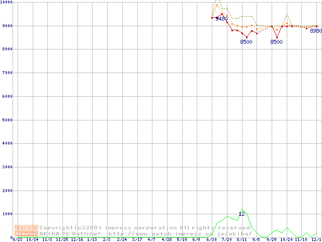 DiamondMax D540X (5400rpm,UltraATA/100,40GB/Platter)の最安値推移