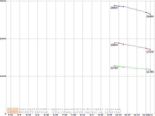| [↑前グラフ]: | Travelstar 20GN (9.5mm,4200rpm,UltraATA/66,2MB/512KB/256KB)の最安値推移 |