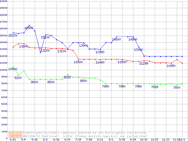 | [↑前グラフ]: | 541DX (5400rpm,UltraATA/100)の最安値推移 |