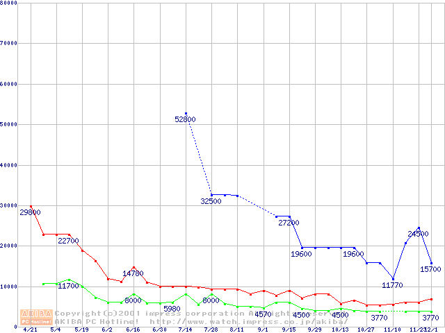 | [↓次グラフ]: | PC2700(DDR333) DDR SDRAM DIMMの最安値推移 |