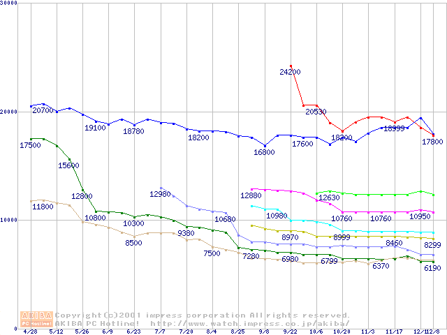 Socket 370・FSB 133MHzの最安値推移