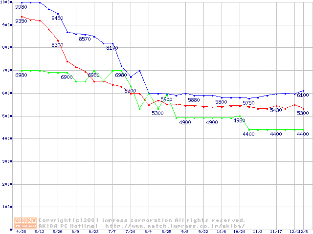 Slot 1・FSB 133MHzの最安値推移