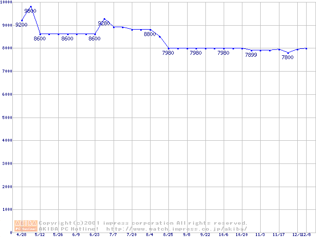 | [↑前グラフ]: | HDD 100GB以上(5400rpmクラス)の最安値推移 |