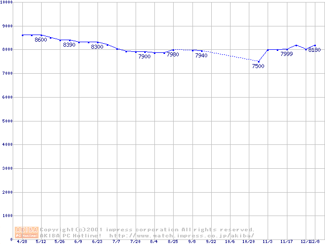 HDD 10GB~20GB未満(5400rpmクラス)の最安値推移