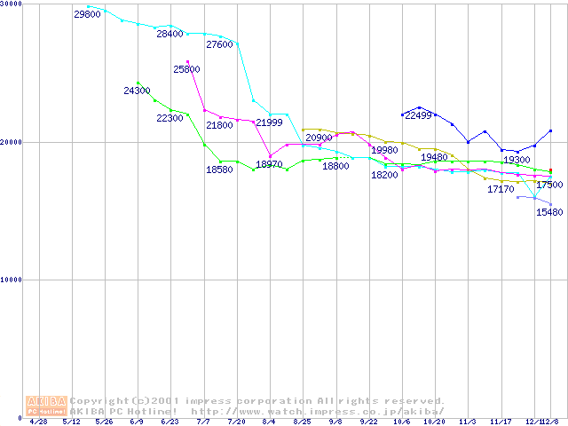 | [↓次グラフ]: | HDD 100GB以上(5400rpmクラス)の最安値推移 |