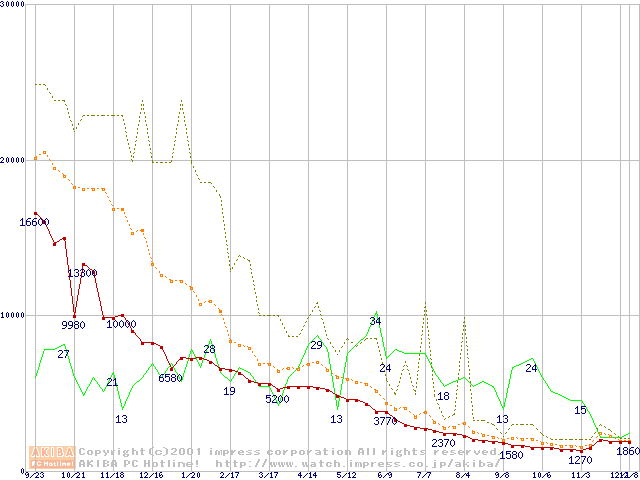 PC133 SDRAM DIMM CasLatency=2の最安値推移