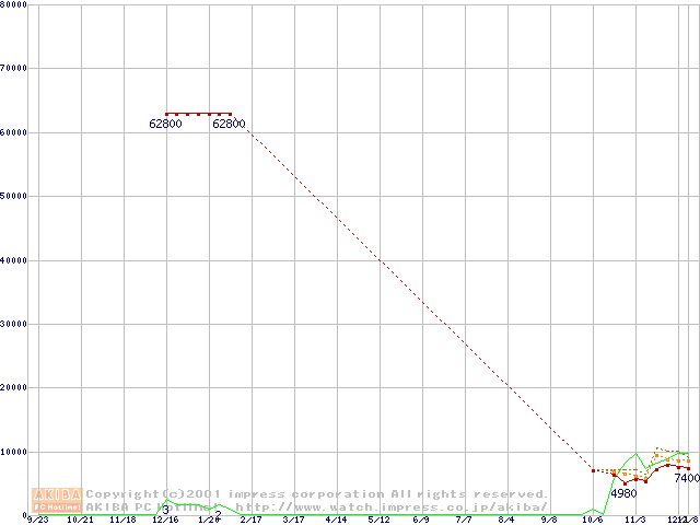 PC133 SDRAM DIMM CasLatency=2の最安値推移