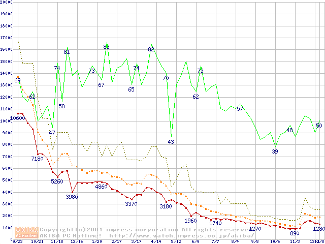メモリ主要製品の最安値推移