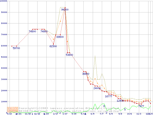 PC133 SDRAM DIMM CasLatency=3 ECC対応の最安値推移