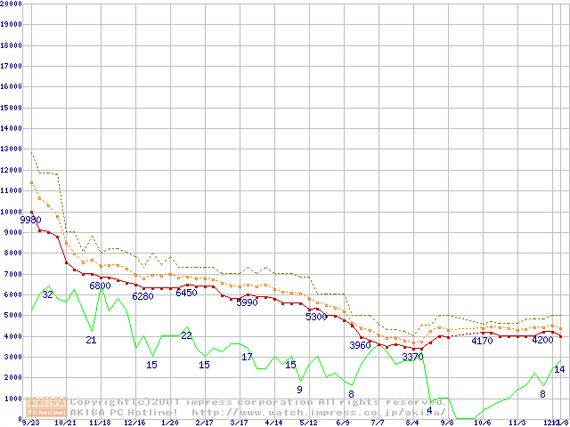 Socket A (Spitfire,PGA,FSB 200MHz,L2 64KB)の最安値推移