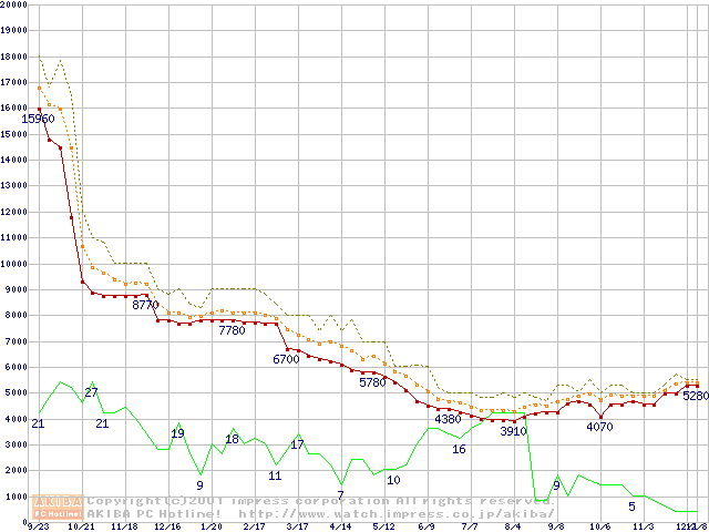 Socket A (Spitfire,PGA,FSB 200MHz,L2 64KB)の最安値推移