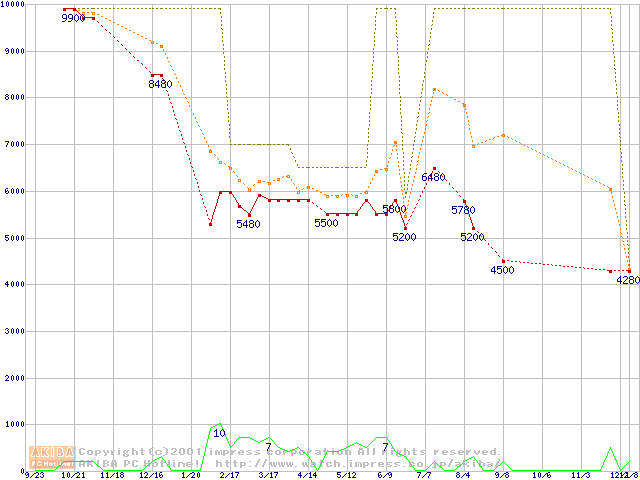 Socket 370 (PPGA,FSB 66MHz,L2 128KB)の最安値推移