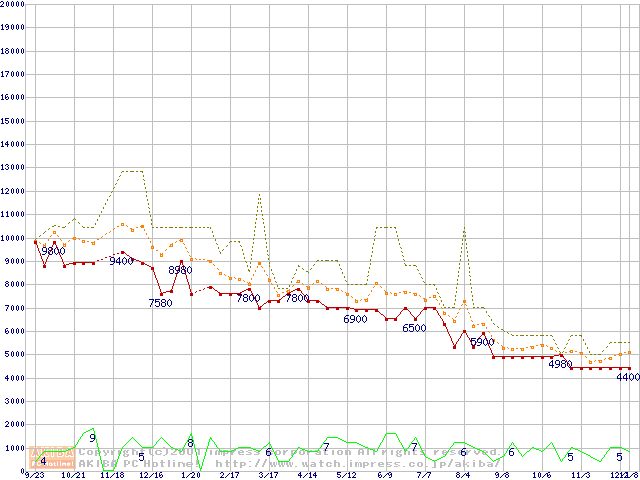 Socket 370 (PPGA,FSB 66MHz,L2 128KB)の最安値推移