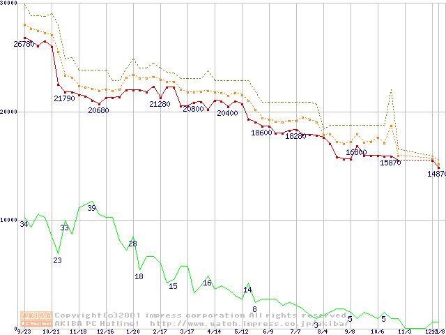 Pentium III 800EBMHz FC-PGA リテールパッケージの価格推移
