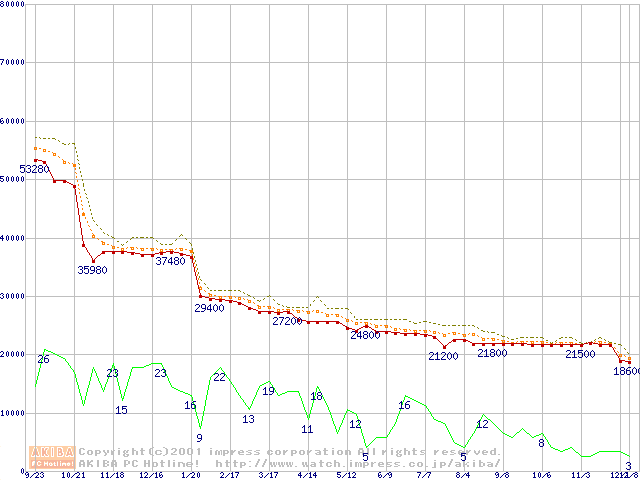 Pentium III 933MHz SECC2 リテールパッケージの価格推移