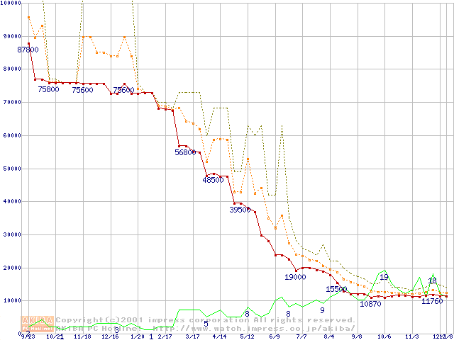 メモリ主要製品の最安値推移