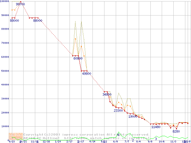 PC100 SDRAM DIMM CasLatency=2 ECC対応の最安値推移