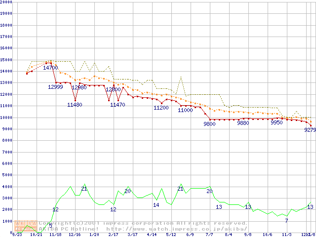 WD Caviar (7200rpm,UltraATA/100,20GB/Platter)の最安値推移