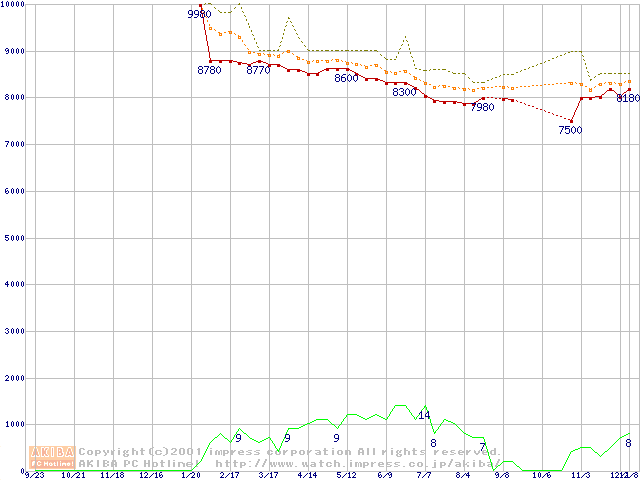 MPG3xxxAT (5400rpm,UltraATA/100)の最安値推移