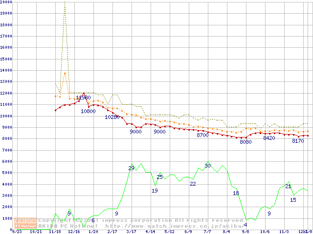 MPG3xxxAT (5400rpm,UltraATA/100)の最安値推移