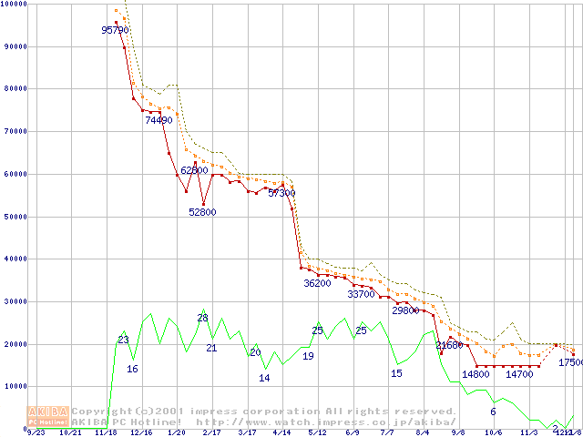 Pentium 4 1.4GHz(423pin)リテールパッケージ(128MB)の価格推移
