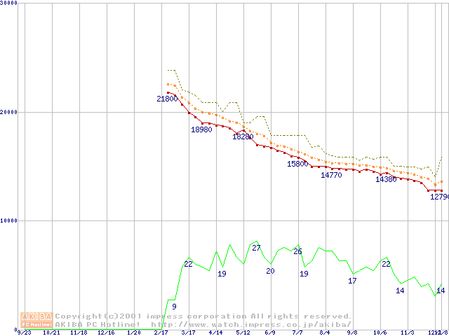 WD Caviar (5400rpm,UltraATA/100)の最安値推移