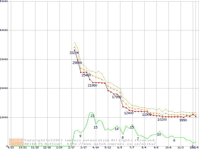 Athlon 1.13GHz(FSB266) (Thunderbird) バルクの価格推移