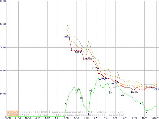 Athlon 1.33GHz(FSB266) (Thunderbird) バルクの価格推移