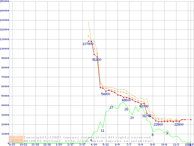 Pentium 4 1.5GHz(423pin)リテールパッケージ(256MB)の価格推移