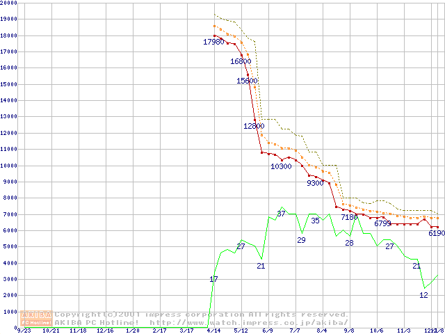 Celeron 850MHz FC-PGA リテールパッケージの価格推移
