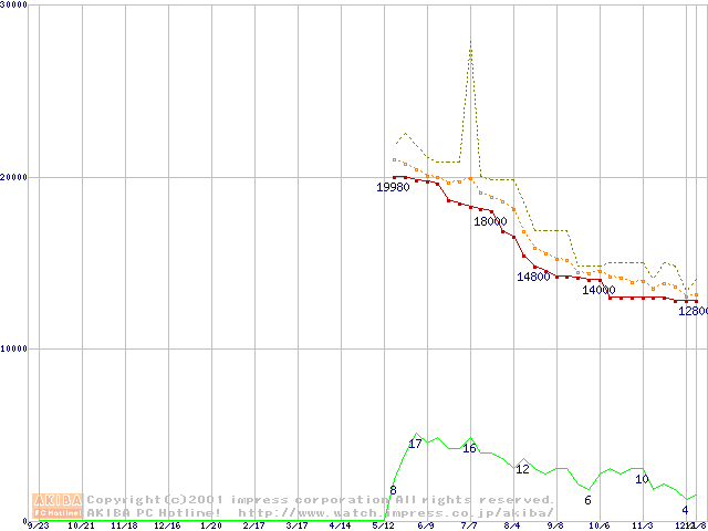 DiamondMax 536DX (5400rpm,UltraATA/100,33.3GB/Platter)の最安値推移