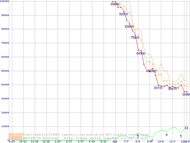 PC800 DRDRAM 512MB ECC対応の価格推移