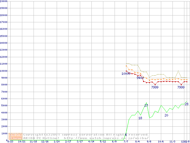 HDD 20GB~30GB未満(5400rpmクラス)の最安値推移