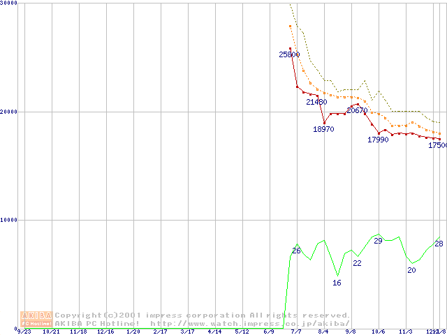 U6 (5400rpm,UltraATA/100 2MB 40GB/Platter)の最安値推移