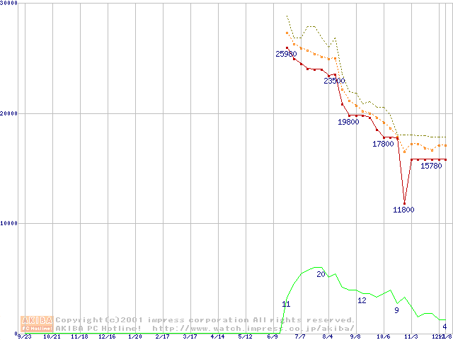 Socket A (Palomino,PGA,FSB 266MHz,L2 256KB)の最安値推移