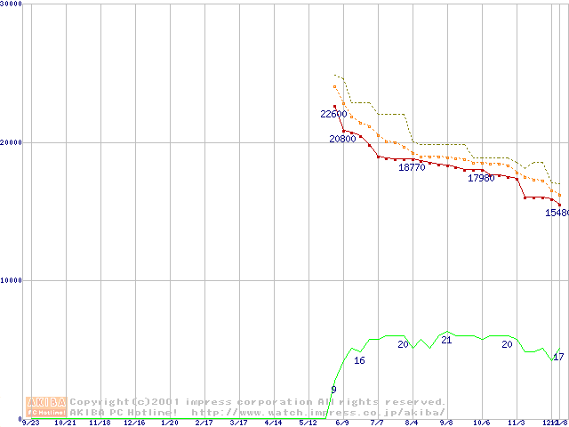 HDD主要製品(最安値1万5千円~2万円未満)の最安値推移
