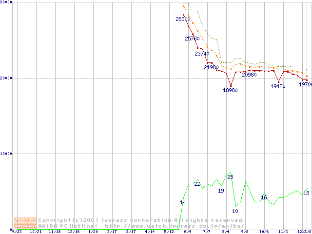 HDD主要製品(最安値1万5千円~2万円未満)の最安値推移