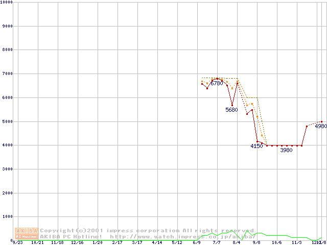 Socket 370 (PGA,FSB 100MHz,L2 64KB)の最安値推移