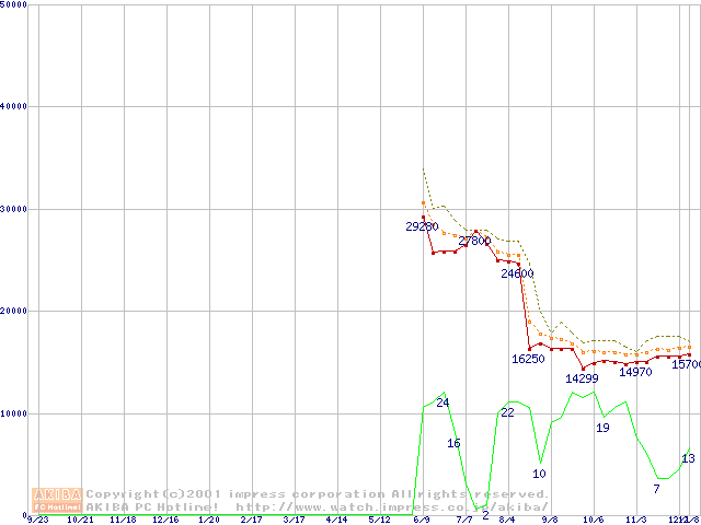 Athlon 1.4GHz(FSB266) (Thunderbird) リテールパッケージの価格推移