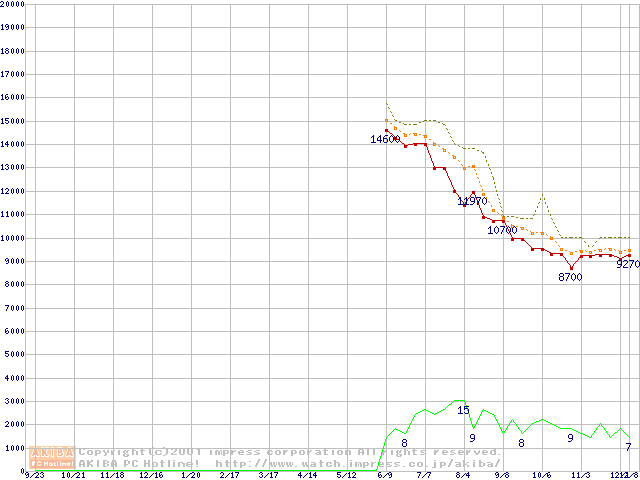 Socket A (Spitfire,PGA,FSB 200MHz,L2 64KB)の最安値推移