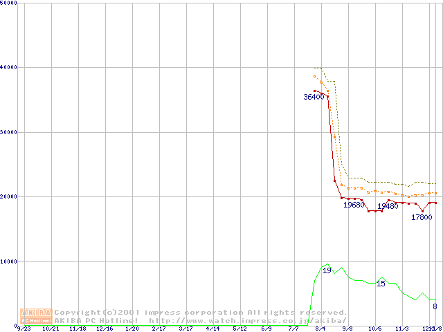 Pentium 4 1.6GHz(423pin)リテールパッケージ(RIMMなし)の価格推移