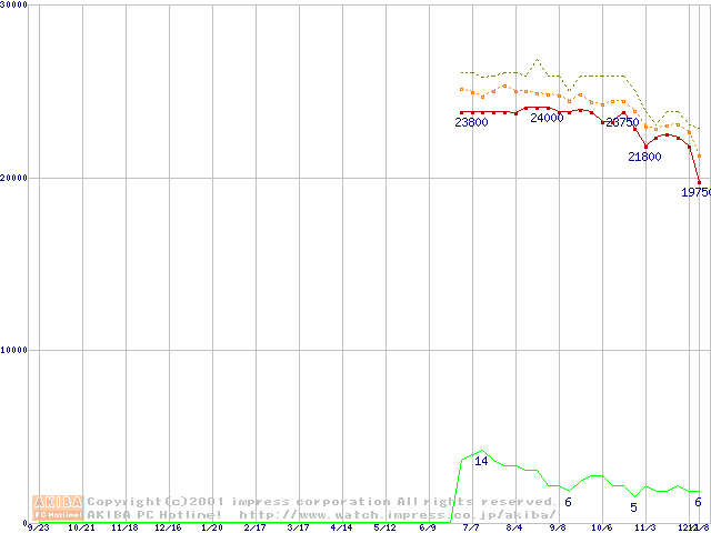Socket 370 (FC-PGA2,FSB 133MHz,L2 256KB)の最安値推移